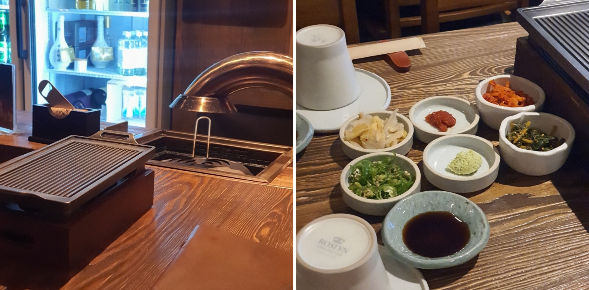 이렇게 테이블 별로 개인화로가 있고, 고기와 함께 곁들일 소스가 많습니다. 청어알이랑 무생채, 된장나물무침까지!!