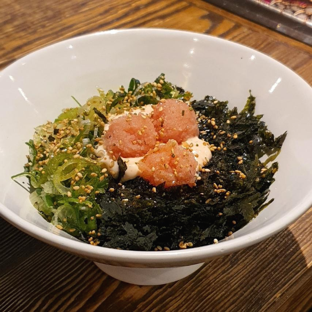 고기가 벌써 끝났다고 아쉬워하던 찰나에 양갈비와 프렌치 랙이 알맞게 익었습니다. 리뷰에 가장 추천이 많이 된 명란파밥도 함께 시켰답니다. ㅎㅎ
