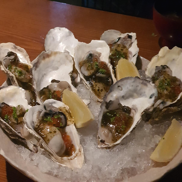 새콤한 미역초회소스가 굴의 신선함이 배가되게 도와줍니다. 연어알은 개인적으로 선호하지 않는데 이 날도 약간 비린 향이 나서 골라내고 먹었어요!
