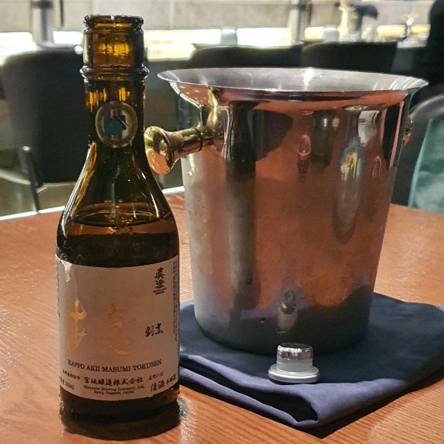 이 사케는 갓포아키의 메뉴와 조화로운 주종을 찾기 위해 직접 미야사카 주조와 콜라보한 작품입니다.