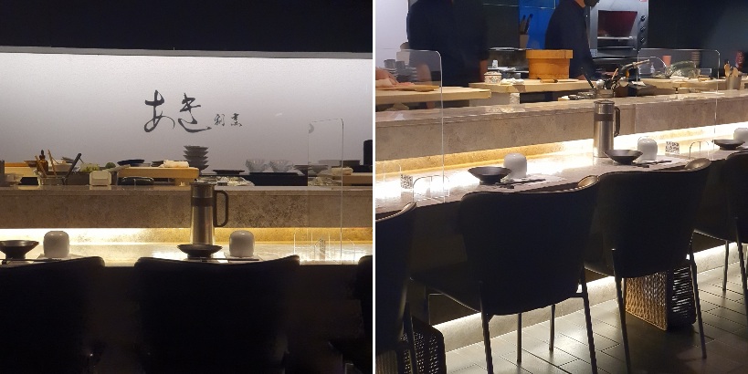 이렇게 오픈된 바가 있고, 테이블 좌석도 있습니다. 테이블 간 간격이 떨어져 있고, 칸막이가 있어서 나름 프라이빗한 느낌이에요.