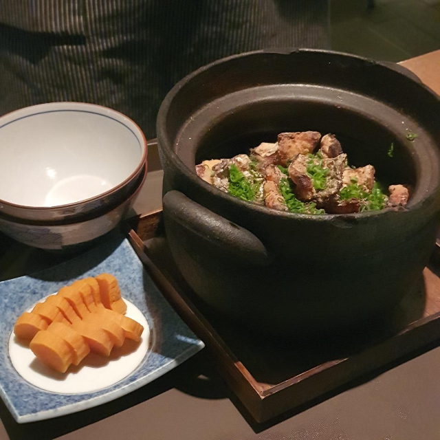 국내산 싱싱한 은갈치를 일본식 솥밥으로 지어낸 밥입니다. 솥밥이다 보니 40분 정도 시간이 소요됩니다. 갈치구이를 먹을 때면 가시 바르기가 귀찮은데 누가 살만 듬뿍 발라서 밥 위에 얹어준 니낌.