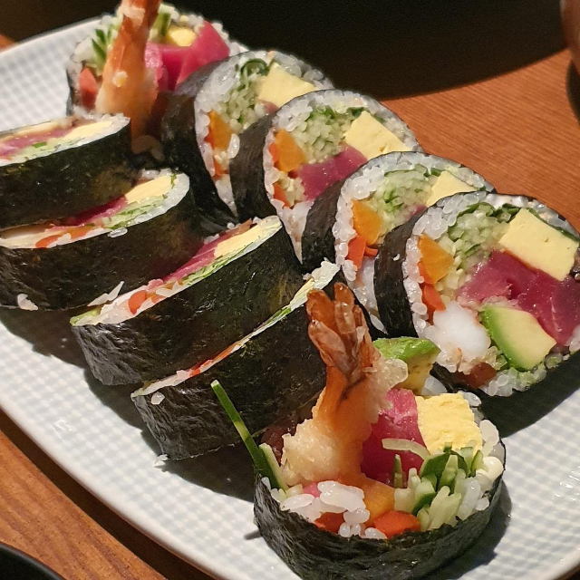 일본식 마끼 후토마키입니다. 두 분이서 여러 요리를 맛보시려면 반줄도 충분합니다.