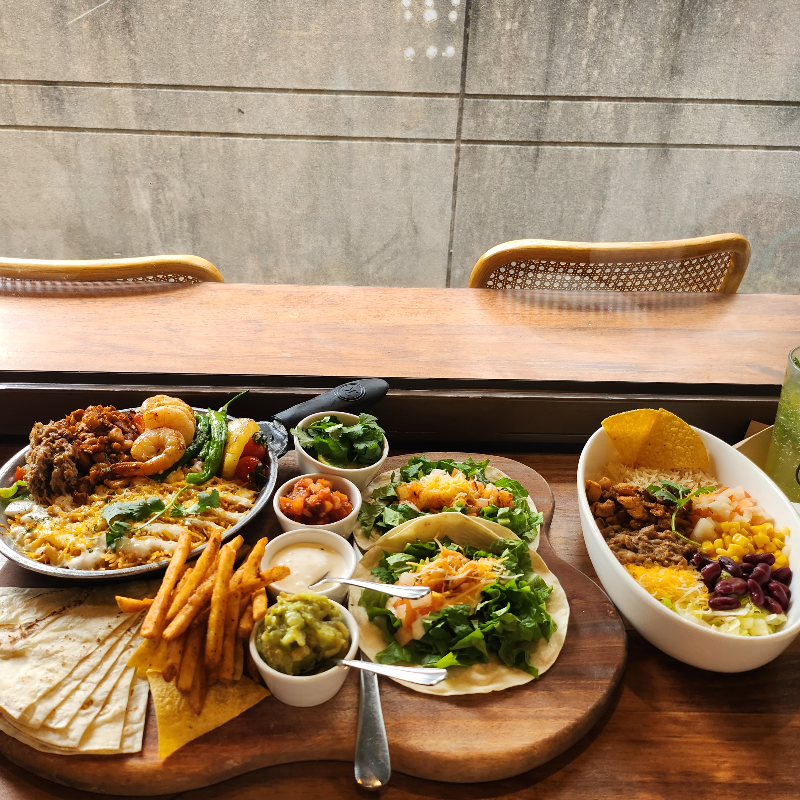 모든 메뉴가 다 맛있지만 토르티야에 파히타와 각종 타코소스를 곁들여서 내 맘대로 싸 먹는 게 너무 조하...